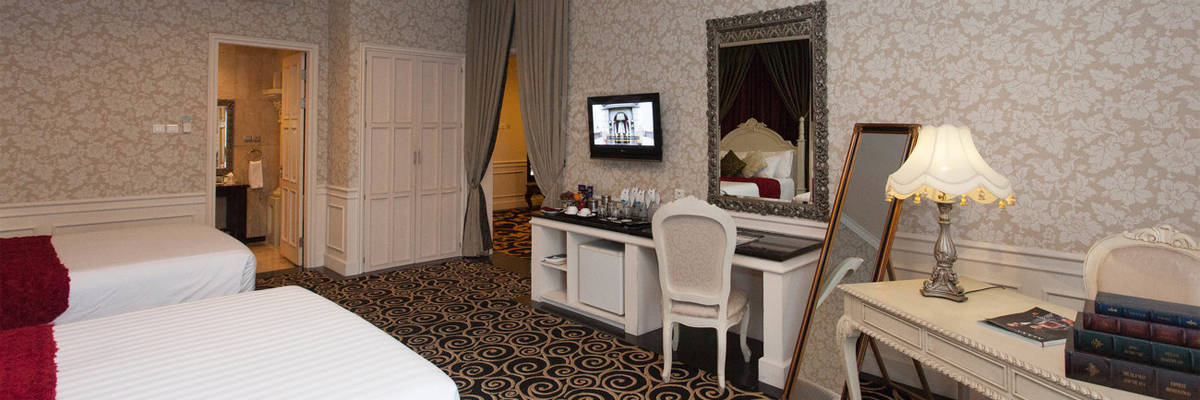 Private 125 square meters haven with exquisite views of Courtyard of The Royale Pool features a separate living room with private balcony, spacious bathroom with rain shower, a luxurious bedroom distinguished by twin beds with queen size bed.